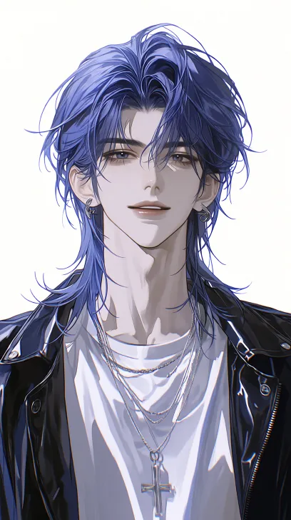 Midjourney Bot 更新时间:2026-02-05 00:05二次元绝美男,伪真绘画,光泽感,脸线有轮廓,雾蓝色色蓬松中长碎发凌乱,桀骜不驯,反派风格,疯狂表情,白色t恤加黑色风衣外套,双层细项链,银色耳钉十字架,丹凤眼,挑眉,白皙皮肤,水润鲜艳薄唇。人物与偏向反派,面部特写,插画绘画,高级cg插画,油画质感,人物逆光,背景病娇风,电影感,少年感,痞帅正脸正面,半身照,身体俯身,偏3D渲染器 --ar 9:16 --c 28 --weird 574 --stylize 656 --niji 7 --no harsh shadows,cartoon,3d game,人偶,真人