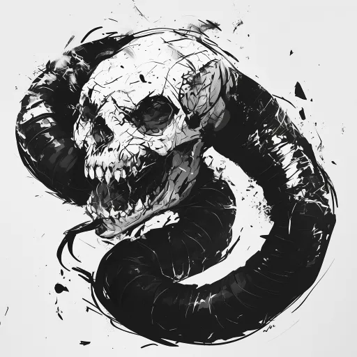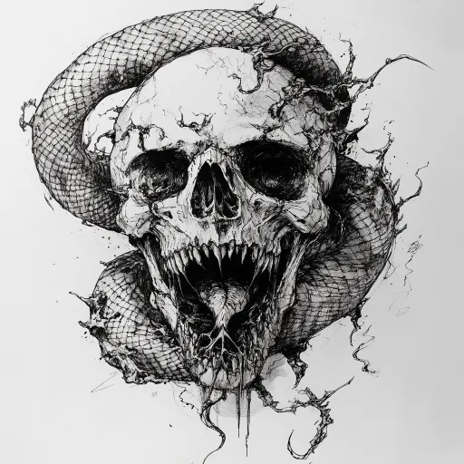 Midjourney Bot 更新时间:2026-02-04 00:25暗黑风格纹身手稿 蛇和骷髅 恐怖 黑白色 扭曲 变异恐怖 --ar 1:1 --v 6.1 --stylize 100