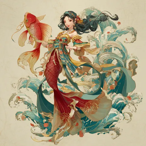Midjourney Bot 更新时间:2026-02-04 00:26東方美人魚剛剛上岸,幸福表情,魚尾準備要變成雙腿 --ar 1:1 --v 7 --stylize 100