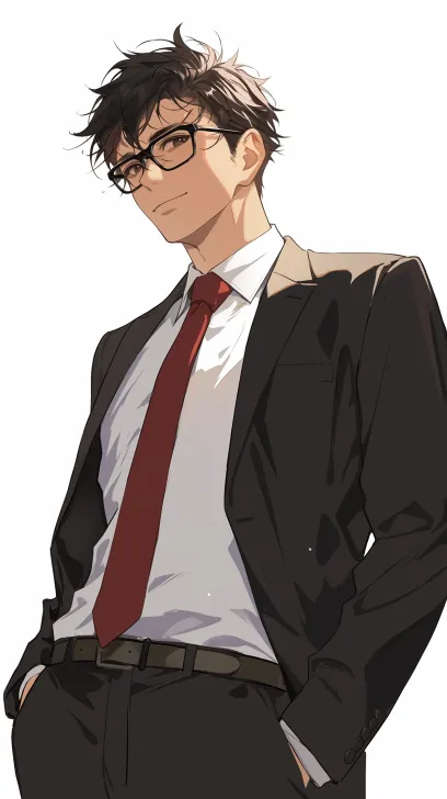 Midjourney Bot 更新时间:2026-02-04 00:27男性,黑色日系dk制服,白色衬衫,红色领带,黑色粗边眼眶 --ar 9:16 --stylize 100 --niji 6 --no 长发、幼年脸