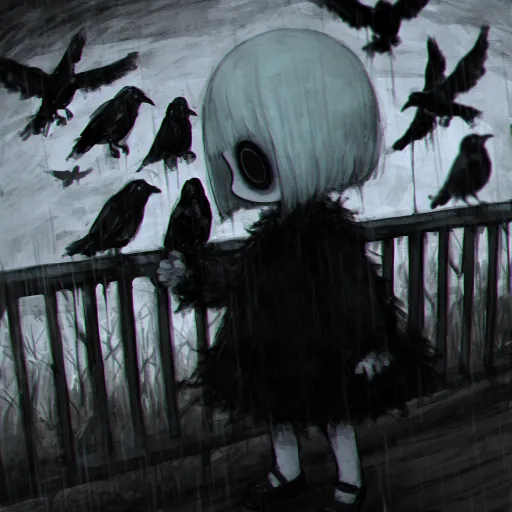 Midjourney Bot 更新时间:2026-02-04 00:31身着华丽黑裙的少女立于栏杆旁,无数乌鸦与黑色羽毛在她周围振翅飞起。她的侧脸带着清冷的决绝,被雨丝与阴翳的天空笼罩,画面充满了孤独又华丽的暗黑仪式感。 --ar 1:1 --c 70 --stylize 750 --niji 6 --sref https://images.gogpt.vip/aigf/m_origin/20260110/1580997/caha3pu0iy1mhymt.png --sw 545 --profile u8nq37r cuvixcj --no 血,英文文字