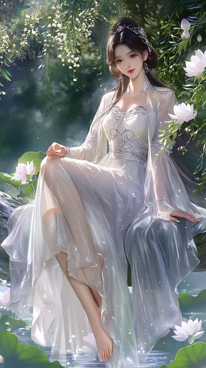 Midjourney Bot 更新时间:2026-02-02 00:19国风元素·柔媚妖姬(8K雾光质感):丝绸汉服,黑发红唇,抹胸裙,明媚眼神,东方古代服装,白衣女神,目视前方,白嫩肌肤,冰肌玉骨,御姐,大长腿,玉足,,半身拍摄,瓜子脸,刘亦菲面貌,索尼摄像机拍摄,修长的手指,汉服,超现实主义,唇染水红微启,丁达尔效应;坐花木藤上,水汽烟雾,人间仙境,纱裙,溪面浮白荷,雾林碎光裹身,每处线条都浸着勾人柔媚。 --ar 9:16 --niji 7 --no 畸形的脸,畸形手指,低分辨率,画面暗淡,