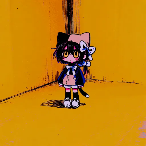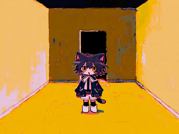 Midjourney Bot 更新时间:2026-02-02 00:23可爱的小女孩在黄色的房间里,黑色短发,长鬓角,金色眼睛,头上戴着橘色猫耳帽,白色三角巾,橘色运动服外套,黑色高领毛衣,白色短裤,黑色裤袜,白色堆堆袜,全身,Q版小人立绘,在室内,空荡荡的房间,室内场景,远景,故障,噪点,梦核感,美式卡通动画画风,柔光滤镜,可怕的,恐怖的,生肉朋克,邪教派对 --ar 1:1 --c 25 --weird 250 --stylize 1000 --niji 7 --sref https://images.gogpt.vip/aigf/m_origin/20260116/2026762/pijplifissjz7pys.jpg https://images.gogpt.vip/aigf/m_origin/20260115/2026762/1eoprd35li62arau.jpg --sw 1000 --no Hair