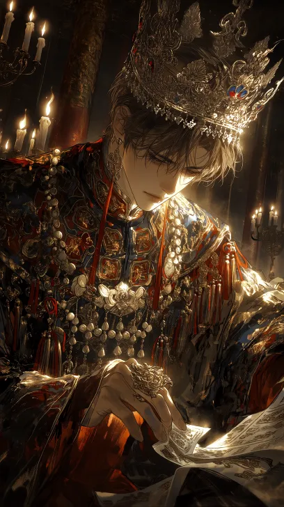 Midjourney Bot 更新时间:2026-02-02 00:35半写实风格,伪厚涂拟真,中国古代帝王,半身特写,俯视视角,顶光俯拍。一位约二十许的皇帝。头戴十二旒白玉冕冠,旒珠遮掩下,眼神幽深难测,疲惫中暗藏鹰视狼顾之机。他身着繁复的玄衣纁裳,十二章纹以金线密绣。一手置于御案之上,指尖轻叩一份密折;另一手藏在袖中,手中紧握一枚冰凉的九龙玉佩。背景是虚化的深宫烛火与高耸的盘龙金柱。氛围是孤绝、猜忌、深不可测的权谋漩涡中心。 --ar 9:16 --stylize 800 --niji 7