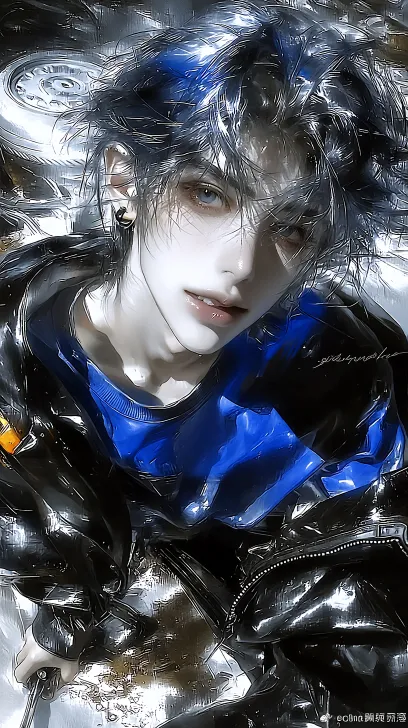 Midjourney Bot 更新时间:2026-02-02 00:02修车工,美少年,蓝黑色凌乱短发,露出额头,东方人,狭长眼,睫毛根根分明,水润唇,表情很凶,痞帅,嘲讽笑。 • 内搭做旧炭蓝黑色圆领T恤, • 外穿黑色工业围裙,有口袋,口袋里露出工具,(扳手,钳子),围裙上有少量深褐色油污与金属划痕,他蹲在地上,手里拿着一个扳手,抬眼看镜头,桀骜不驯 镜头:俯拍视角,上半身近景,浅景深,背景虚化,前景虚化 背景:修车厂,堆满生锈零件、旧轮胎与油污地面,工业风细节,半厚涂漫画风格,高对比度,暗黑颓废氛围,细腻皮肤质感 ,BJD,高级CG,清晰感,8k高清,水润感,面部特写,线条流畅,三分法构图,复杂纹理,极致细节。比例 9:16。 --ar 9:16 --c 17 --weird 187 --stylize 876 --niji 7 --sref https://images.gogpt.vip/aigf/m_origin/20260130/2034231/x26ahjzwv9r67rfq.jpg --sw 789 --no 低分辨率