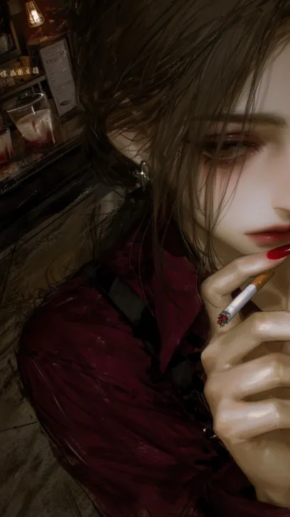 Midjourney Bot 更新时间:2026-02-02 00:09细笔触,亮光,大头照,棕色头发,低盘发,美女,棕色眼睛,成熟女人,穿着酒红色衬衫,丰满的胸脯,红色指甲油,拿着一只女士香烟,背景是香港冰室。画面高质感, --ar 9:16 --style raw --stylize 595 --niji 6 --profile o5giyur 6yn7nth --no 侧面,俯视,仰视,白色背景