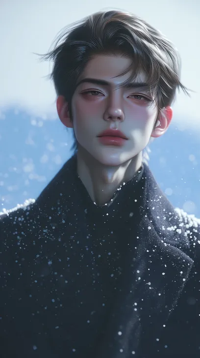 Midjourney Bot 更新时间:2026-02-02 00:12镜头:中近景正面,中国男性主体——瓷器般苍白的肤色,精致五官,小巧的V形脸庞,温柔眼眸。他梳着光滑柔顺的发型,身着高黑色的大衣。背景是冬天的北海道,大海边,男性主角张开双臂,闭着眼睛,放佛在感受冬天的美丽,雪花飘落在男性的肩膀和头发上。这张深景深镜头中,背景所有元素皆清晰锐利,细节分明。运用电影级夜间照明技术,呈现超现实的8K画质。 --ar 9:16 --v 7 --stylize 100 --oref https://proxyapi.gogptai.com/youchuan_cdn/3bd3767d-3bac-477b-b9b3-4c5ac053e629_0_1.png --ow 200