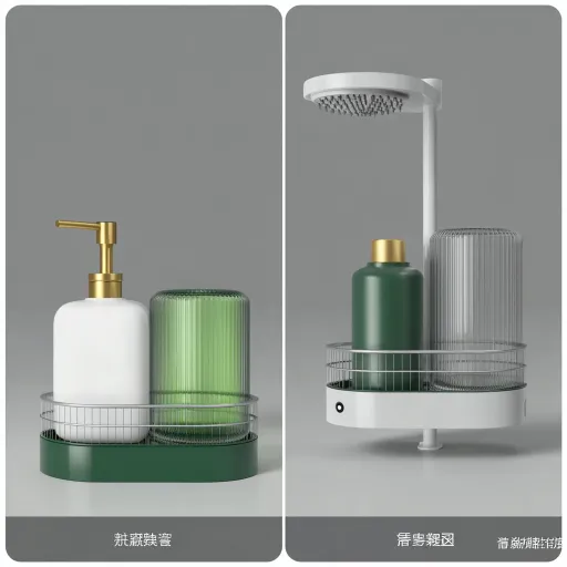 Midjourney Bot 更新时间:2026-02-02 00:14用户希望基于提供的两张参考图,设计一款新的浴室转角伸缩置物架。核心需求如下: 产品类型: 浴室转角置物架。 核心功能: 免打孔安装、可伸缩、分区收纳(这些功能已在参考图中体现)。 风格: 简约现代、极简色(参考图为白色,符合此要求)。 --ar 1:1 --v 7 --stylize 100 --sref https://images.gogpt.vip/aigf/m_origin/20260202/2024060/oov7w8it7mzjjbxb.jpg --sw 269