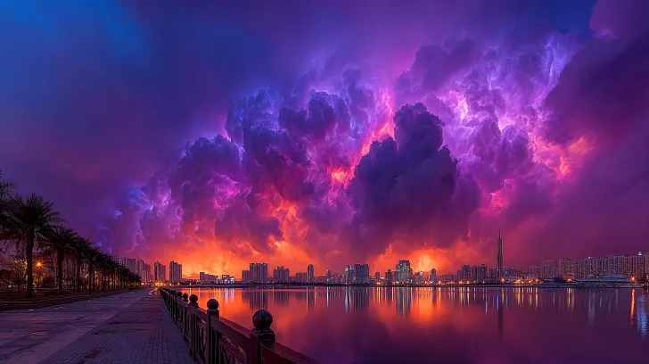 Midjourney Bot 更新时间:2026-01-30 00:15好莱坞史诗级电影级画质真实光影,高级庭院设计,木桥在清澈蓝色水面有浮萍和其他水生植物,高透明度的科技感玻璃,科技感曲率尖顶大厦,超级闪亮诡异神秘深邃的蓝紫色黑洞,飓风席卷海面掀起巨浪,暴雨中摇曳的椰子树,巨大猛烈强烈的核爆冲击波,向日葵和蓝紫色薰衣草花海,俯瞰图超广角,掠过海面激起巨大浪花,氛围阴森而壮观,超写实的渲染,细腻的粒子效果,专业的风景摄影 --ar 16:9 --v 7 --c 100 --stylize 720 --no Characters,vehicles,miscellaneous items.
