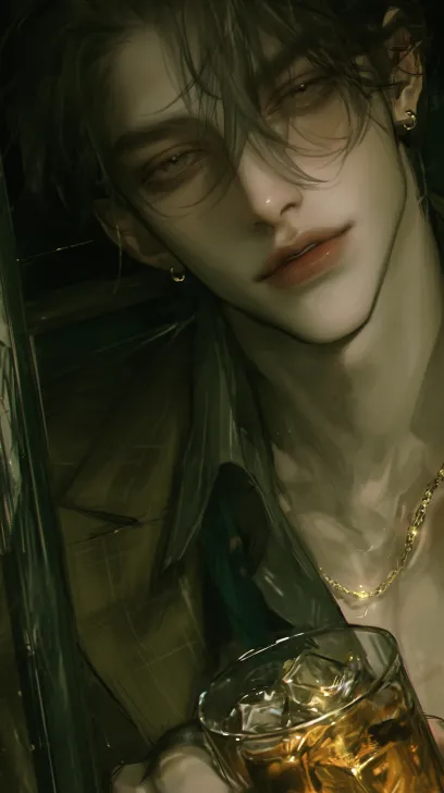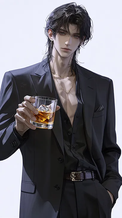 Midjourney Bot 更新时间:2026-01-31 00:03真实感,伪厚涂,一位25岁男性,中长发,宽肩窄腰,正面角度,他正面视角看我,身穿着西装,拿着一杯子,里面装着酒和冰决,2倍特写,薄情眼,绝美大眼睛,魅力十足,大半身照,忧郁的眼神,薄唇,像真人一样的身材,身体两边不留白,腰到头发近距离肖像,局部构架,大师杰作,近景照,腰到头发肖像,纤细的身材,男性魅力十足,身在出祖屋里,脖子上带着金链子,拟真风格 --ar 9:16 --stylize 700 --niji 7 --no No teeth,no real people,no oil painting style,no hair in front of the forehead covering the eyes,no lying down,no blurry picture quality,no hands,no objects in the nostrils,不要真人感