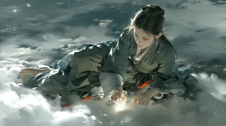 Midjourney Bot 更新时间:2026-01-30 00:02一位绿袍汉服女神侧卧于浩瀚云海之上正警觉起身,面容清丽如山水凝韵,肌肤通透似雪,双眸清澈疏离映照天地剧变。身披碧青至孔雀蓝流动渐变的云气广袖长袍,衣袂如水流光晕飘拂云端,长发以天然青藤轻绾,赤足点云。一手撑云,另手抬起凝聚璀璨灵光神性精华,背景无垠云海氤氲霞光凸显天穹神祇位格。融合中国水墨写意渲染与现代动漫概念艺术,碧青月白霞金主色调点缀微红灵光,氛围空灵圣洁兼具肃穆神性。大师级数字绘画,8K超精细渲染,电影级光影构图,衣袍气劲鼓荡,细腻肤质超高清细节,钟风华概念艺术风格。东方美学意境,叙事张力饱满,材质丰富写实,全身照展现精致发丝纹理与玉石般足踝曲线。 全身角色, --ar 16:9 --c 19 --weird 643 --stylize 421 --niji 7 --sref https://images.gogpt.vip/aigf/m_origin/20260129/2029964/jv9wmsahzxq7jjvp.png --sw 1000 --no 避免:西方面孔,白皙皮肤,华丽装饰,浮夸表情,萌系画风,机甲科幻,现代服装,油腻感,网红脸,过度美颜,失真比例,男人,老人,半身,避免不真实,避免卡通化,避免低质量,避免模糊,避免畸形手部。