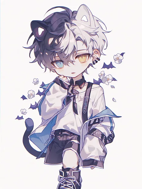 Midjourney Bot 更新时间:2026-01-30 00:08https://images.gogpt.vip/aigf/m_origin/20260129/67877/dkkzotxz7xytiow7.jpg 可爱插画,颜色通透,氛围感,白色短发,短裤,猫耳朵,短发,男孩,氛围感,有背景,插画,新中式,符咒,妖魔鬼怪 --ar 3:4 --stylize 109 --iw 0.5 --niji 7 --no 御姐,欧美