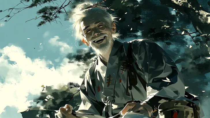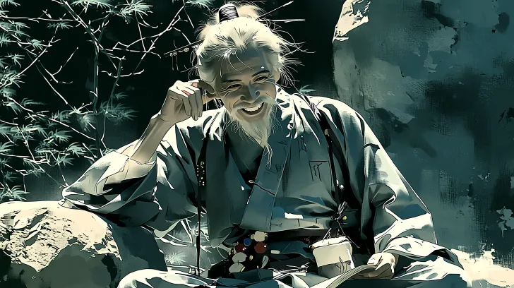 Midjourney Bot 更新时间:2026-01-30 00:10一位枯瘦老儒身着灰褐色旧直裰立于古朴庭院山石之畔,面容清癯皱纹深刻蕴藏岁月智慧,舒展眼角笑纹衬明亮温润双目透豁达促狭灵光,嘴角上扬慈悲亲切。直裰洗白发白细密暗纹,多色补丁针脚清晰,腰间旧布带斜挎磨损布袋,花白头发天然树枝绾松散发髻随风轻扬。身形清瘦挺拔如古松微俯身,一手捋胡须另手虚指书卷,姿态闲适智慧。背景青竹石案漫卷云霞,温暖柔和晨光夕照衣袍泛温润内敛光。融合中国传统工笔画精细勾勒与现代插画光影质感,暖褐旧纸黄淡青色调返璞归真温润儒雅。大师级数字绘画,超高分辨率细腻肤质布料纹理,生动光影宁静祥和故事感。钟风华概念艺术风格,Octane渲染,虚幻引擎,全身照片自然光线强调材质东方美学意境。 全身角色, --ar 16:9 --c 19 --weird 643 --stylize 421 --niji 7 --sref https://images.gogpt.vip/aigf/m_origin/20260129/2029964/jv9wmsahzxq7jjvp.png --sw 1000 --no 避免:西方面孔,白皙皮肤,华丽装饰,浮夸表情,萌系画风,机甲科幻,现代服装,油腻感,网红脸,过度美颜,失真比例,男人,老人,半身,避免不真实,避免卡通化,避免低质量,避免模糊,避免畸形手部。