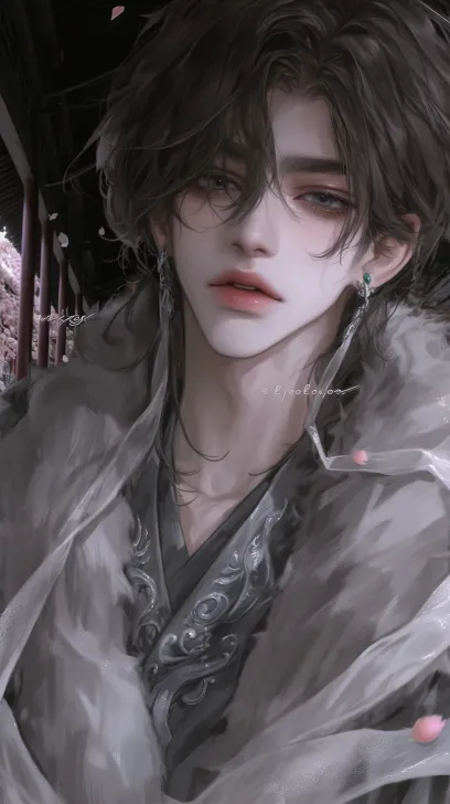 Midjourney Bot 更新时间:2026-01-30 00:11全身肖像,广角。一个帅气的古风男子,身穿浅色古装上面有银色雕花纹,披了一件灰毛领。平静的直视着镜头。他可能正站立在一个连廊,或者是普通的庭院中。身旁飘着桃花。头上还别着一朵玉簪子。8k动漫插画画风 --ar 9:16 --stylize 800 --niji 6 --profile spr1pcg k3enpop 6s7th5h 1ln3ucy 77fdu6d --no looking up beard Realistic feeling