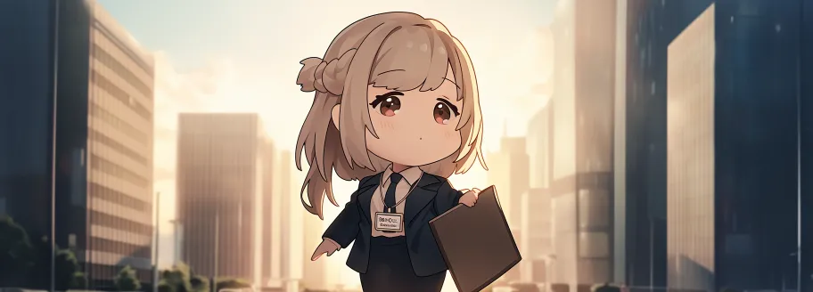Midjourney Bot 更新时间:2026-01-28 00:18日系职场漫画风,可爱Q版女性职场人,2.5头身比例,干净线条,柔和粉彩色调,女员工佩戴工牌,工牌上写sws-c,左手抱文件夹,右手背电脑包,站在现代办公大楼前,清晨明亮光线,自信温暖的氛围,专业插画 --ar 3328:1196 --stylize 100 --niji 6 --sref https://images.gogpt.vip/aigf/origin/20260123/1769128687483399_3.png --sw 1000