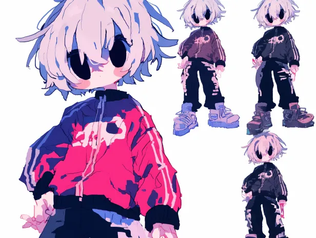 Midjourney Bot 更新时间:2026-01-28 00:19可爱的小男孩,全身,立绘,多个人物立绘穿着不同服装做出不同动作,白色头发,黑色眼睛,穿着红色运动服外套,黑色长裤,潮流穿搭 --ar 4:3 --stylize 100 --niji 6 --sref https://images.gogpt.vip/aigf/m_origin/20260116/2026762/pijplifissjz7pys.jpg https://images.gogpt.vip/aigf/m_origin/20260115/2026762/1eoprd35li62arau.jpg --no Hair