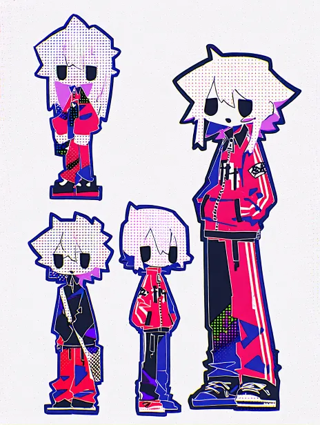Midjourney Bot 更新时间:2026-01-27 00:02可爱的小男孩,漂亮的少年,正太,全身,立绘,多个人物立绘,白色长发,黑色眼睛,穿着红色运动服外套,黑色长裤,潮流穿搭,猎魔人,可怕的,恐怖的,漫画,参考表,网点漫画,伪人,可怕的,恐怖的,生肉朋克,邪教派对,欧美卡通画风,儿童涂鸦画风,铅笔画 --ar 3:4 --c 25 --weird 250 --stylize 1000 --niji 7 --sref https://images.gogpt.vip/aigf/m_origin/20260115/2026762/4vuerc141uayxxv0.jpg https://images.gogpt.vip/aigf/m_origin/20260116/2026762/pijplifissjz7pys.jpg https://images.gogpt.vip/aigf/m_origin/20260115/2026762/1eoprd35li62arau.jpg --sw 1000 --no Hair