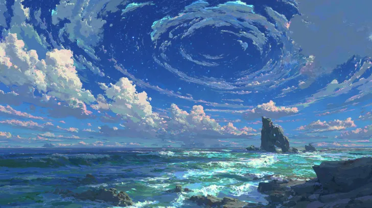 Midjourney Bot 更新时间:2026-01-27 00:06一幅壮观的海洋景观,天空中的云层形成了一个旋涡状的形状,色彩从蓝色渐变到柔和的粉色与白色,营造出神秘与奇幻的氛围。海面波涛汹涌,深蓝与浅蓝交织,反射出光线,显得生动而富有层次感。远处的孤立岩石在海浪中耸立,与天空的奇妙景象相呼应,整体画面展现出一种自然的力量与美丽,令人叹为观止。 --ar 16:9 --v 7 --stylize 100 --sref https://images.gogpt.vip/aigf/m_origin/20260125/2036441/ublsigersny4jj8s.png --sw 50