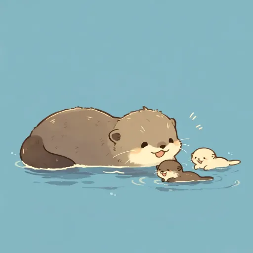 Midjourney Bot 更新时间:2026-01-27 00:08一只可爱是水獭妈妈带着两只宝宝在水面上嬉戏打闹 --ar 1:1 --stylize 100 --niji 7