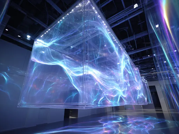 Midjourney Bot 更新时间:2026-01-27 00:09超现实数字艺术,未来科技感创作空间,人类设计师与智能机械臂、全息 AI 界面协同创作,空中悬浮着四维动态的抽象设计形态,霓虹蓝与银白为主色调,光影通透充满科技未来感。 --ar 4:3 --v 7 --stylize 100