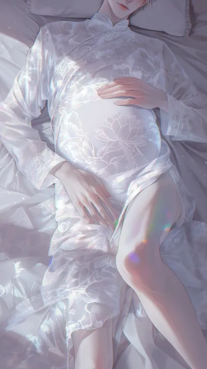 Midjourney Bot 更新时间:2026-01-27 00:09怀孕,一个俊美动漫男人躺在床上,穿着白色蕾丝旗袍,缠枝莲纹印花 ,冷白皮,双腿细长,手拿着被子,肌肉线条流畅,动漫风格,旗袍,数字艺术,by,动漫美学,动漫风格,高角度拍摄,柔和的调色板,动漫的插图,柔和的灯光, --ar 9:16 --style raw --stylize 180 --niji 6 --no no