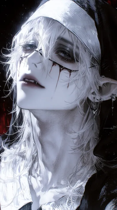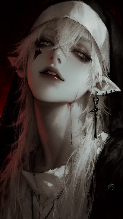 Midjourney Bot 更新时间:2026-01-26 00:05Male, looks around 20 years old, pseudo-heavy coating, high-level illustration, pencil style, black and white, grainy texture, oil painting feel, indifferent expression, high-end CG, cool white skin, cool color tone, sickly sweet rich girl, gothic style, elf ears with blood, dark, red ambient light, facial BJD feel, alluring yet slightly lazy vampire, pointed chin, small face, delicate features, beautiful makeup, black water-like glossy glass quality pupils, light black fluffy long hair topped with a nun's hat, white fabric half-eye mask, fragmented pathological beauty, 8K ultra HD, half-body portrait, meticulous brushwork, translucent texture, rich detail depiction, atmospheric sense, niji 7. --ar 9:16 --stylize 666 --niji 7