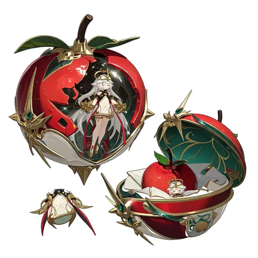 Midjourney Bot 更新时间:2026-01-26 00:03Commercial advertising rendering, product design, three-dimensional structure design, character modeling, glass products, Chibi, Gold inlaid jade craft, complete design display, Sallulu, Genshin Impact style, a transparent girl made of glass, glass skin, white long hair, shrunk into a ball in the broken red lychee skin to sleep, green lychee leaves, delicate facial features, multi material mixture, wearing a unique cut white cheongsam, colorful luster, exquisite and shiny glass works of art, red and white color matching, structural design, metal decoration, commercial grade material rendering, eyes closed, metal edging process, clothing design, Chinese craft --ar 1:1 --stylize 119 --niji 7 --sref https://images.gogpt.vip/aigf/m_origin/20251211/140639/zlp79p6hnuaqql7x.jpg https://images.gogpt.vip/aigf/m_origin/20251225/140639/5lr4lgyos7nbblxi.png https://images.gogpt.vip/aigf/m_origin/20251204/140639/iafmhpmklubrn0gz.jpg --sw 66