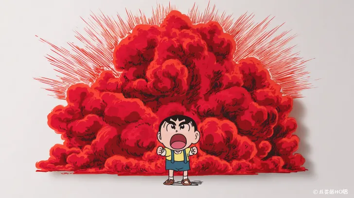 Midjourney Bot 更新时间:2026-01-26 00:08Crayon Shin-chan animation style illustration, outlined with thick lines, colors are saturated and bright, shapes are simple and cute, a sense of Japanese anime childishness, pure white background, simple composition, the picture is clean and warm. A round-faced little boy with thick eyebrows, big eyes with black pupils, two light pink circular blushes on both sides of his cheeks, black fluffy short hair, barefoot, wearing a yellow T-shirt and blue suspender shorts, standing in the center of the picture, mouth wide open shouting loudly, above his head there is red steam and lines erupting like a cartoon volcano, both hands tightly clenched into fists at his sides, eyes wide open, brows furrowed, face flushed red, expression very angry and excited, the atmosphere is intense, tense, and full of explosive energy. --ar 16:9 --v 7 --stylize 100 --oref https://images.gogpt.vip/aigf/m_origin/20260123/2037463/2wh0x7slxa5fi2e9.jpg --ow 1000