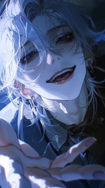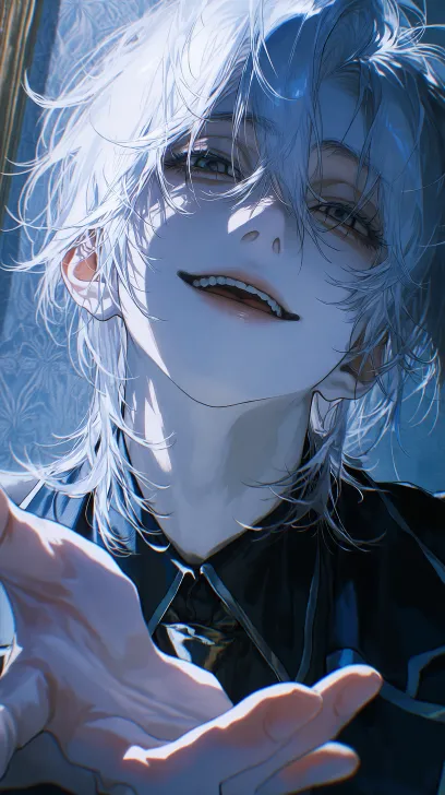 Midjourney Bot 更新时间:2026-01-21 00:04男子,白色挑染中长发,头发蓬松飘逸凌乱,前面短后面长 眉眼狭长,瞳孔为黑琉璃色吊梢眼,尾微挑,戏谑感,危险感, 妩媚感,病娇感,疯批感,居高临下感,贵气感 背景为动漫墙纸 身穿黑色贵族校服,戴领带 仰视角,俯视感,似笑非笑,藐视感,戏谑感,眼神挑衅,柔光,逆光,伸手呈现张开掌心的手势伸向屏幕,充满压迫感,脸上被打上氛围感灯光, 中距离 脸部有细节描写 光感强,颜色饱满 脸部有着细节描写,水润唇,高级CG,伪厚涂插画,冷色调,白色调,明亮分明 --ar 9:16 --stylize 766 --niji 7