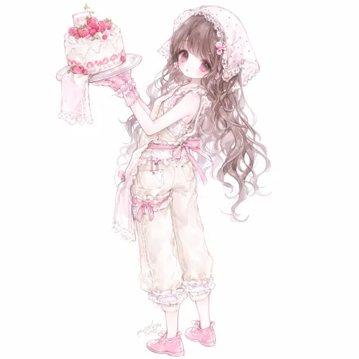 Midjourney Bot 更新时间:2026-01-21 00:05平视视角,正面镜头角度,七分身拍摄,一个女生站着弯着腰,褐色长发,头上戴着白色波点头巾和粉色发卡,身穿淡黄色背带裤,白色蕾丝花边,系着粉色围裙,手上戴着粉色防烫手套,粉色小皮鞋,抬着一个草莓蛋糕,适当缩小人物,墨渲染,精致细节,柔和的光线,氛围感,朦胧感 --ar 1:1 --seed 3627277985 --stylize 555 --niji 6 --sref https://images.gogpt.vip/aigf/m_origin/20250427/1512125/ngiqkg9co3roj2p8.png --profile rsxjf9z --no 不要出现侧面