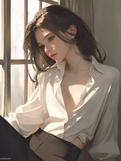 Midjourney Bot 更新时间:2026-01-21 00:08https://images.gogpt.vip/aigf/m_origin/20260121/2034345/lhb3yzpwjyx1bgyi.jpg A melancholic beautiful girl leaned against the window, wearing a white shirt with two unbuttoned buttons and black trousers. --ar 3:4 --stylize 100 --iw 0.25 --niji 6