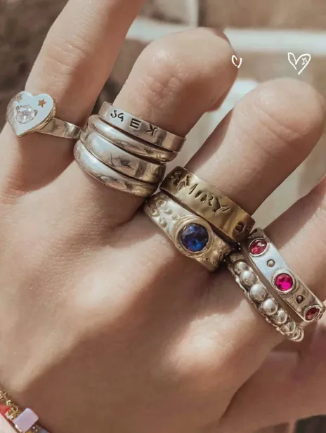 Midjourney Bot 更新时间:2026-01-21 00:11https://images.gogpt.vip/aigf/m_origin/20260120/2034308/ky7klz42sly7lodc.jpg https://images.gogpt.vip/aigf/m_origin/20260121/2034308/o3pn5t0za6ah73dg.jpg https://images.gogpt.vip/aigf/m_origin/20260121/2034308/7w62behw6p6cyfzt.jpg Wearing several silver rings on one hand, ranging from thin to wide, showcasing rich design and personality. On the left are two silver rings engraved with letters and a careful shape, while on the right is a combination of gold and silver rings, with a blue gemstone set in the center and several red gemstones scattered around. The overall design is fashionable and playful, adding to the overall cute atmosphere. The background is blurry, highlighting the details and beauty of the ring. --ar 3:4 --v 7 --c 28 --seed 827206569 --stylize 100 --sref https://images.gogpt.vip/aigf/m_origin/20260121/2034308/mfh9m7qloceit8qu.jpg