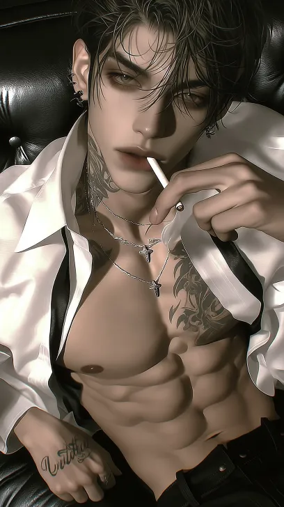 Midjourney Bot 更新时间:2026-01-21 00:13https://images.gogpt.vip/aigf/m_origin/20260118/2031338/1rktu4wdho9mdy3e.jpeg https://images.gogpt.vip/aigf/m_origin/20260121/2031338/lzsd1ufqub2wa2pa.jpeg https://images.gogpt.vip/aigf/m_origin/20260121/2031338/yxp0fwdmohbpnf5b.jpeg https://images.gogpt.vip/aigf/m_origin/20260121/2031338/wyrg5zf7zes1q33y.jpeg https://images.gogpt.vip/aigf/m_origin/20260118/2031338/frfprc7ruhe2uxl9.jpeg A muscular male wearing an open top white shirt with strong chest muscles and prominent tattoos. He held a cigarette in his hand against a dark leather sofa, creating a luxurious and slightly mysterious atmosphere. The overall picture is filled with delicate light and shadow effects, emphasizing the muscle lines and the radiance of the skin. --ar 9:16 --c 28 --weird 281 --stylize 145 --niji 7 --sref https://images.gogpt.vip/aigf/m_origin/20260119/2031385/86aepuclgokwr8sw.jpeg https://images.gogpt.vip/aigf/m_origin/20260121/2031338/wyrg5zf7zes1q33y.jpeg https://images.gogpt.vip/aigf/m_origin/20260121/2031338/yxp0fwdmohbpnf5b.jpeg https://images.gogpt.vip/aigf/m_origin/20260121/2031338/lzsd1ufqub2wa2pa.jpeg https://images.gogpt.vip/aigf/m_origin/20260118/2031385/ghncqn95qjy5hwox.jpeg --sw 402