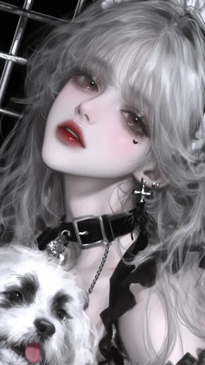 Midjourney Bot 更新时间:2026-01-20 00:16白发女仆装少女与受伤的白色小狗,浅金色短发、玫红色眼眸、佩戴女仆头饰、身着黑白女仆装、手臂有绑带装饰,小狗嘴角带血迹,昏暗的室内客厅黑色沙发场景,中近景俯视构图,暗黑系二次元插画风格,低饱和黑白色调点缀玫红与血色,35mm焦段镜头、深景深、阴郁光影效果,8K分辨率、 --ar 9:16 --c 1 --stylize 1000 --niji 6 --profile t8cy1vq 5xbwpmy