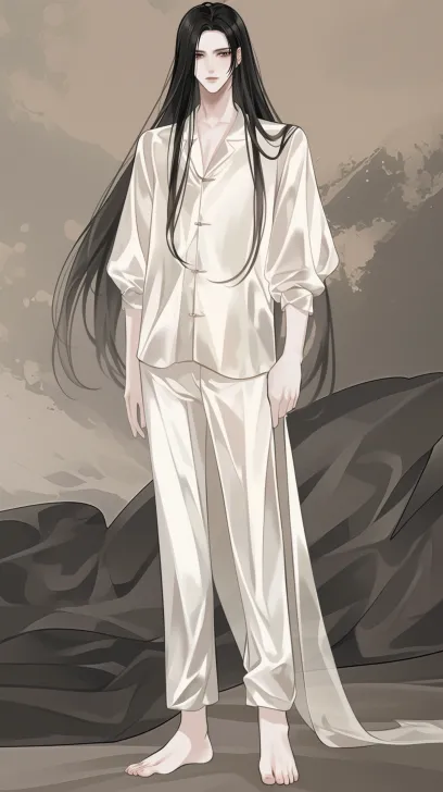 Midjourney Bot 更新时间:2026-01-20 00:17一幅以动漫为灵感的插图,描绘了一个优雅的年轻男人,留着黑色长发,穿着白色丝绸旗袍,睡衣,背景是深灰色和米色,营造出一种神秘的氛围。他五官精致,皮肤白皙,双腿细长,fitted,宽肩窄腰,垫肩,宽臀,腰臀比例完美,站着 --ar 9:16 --style raw --stylize 100 --niji 6 --no no