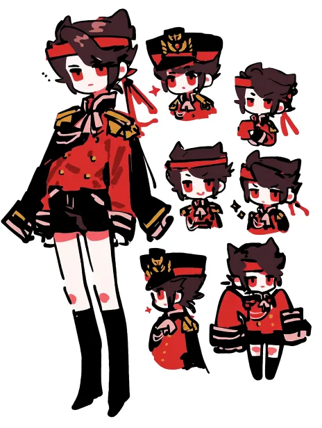 Midjourney Bot 更新时间:2026-01-20 00:20可爱的小男孩,全身,立绘,参考表,多个人物立绘做出不同动作,表情拆分,黑色头发,长鬓角,红色眼睛,头上戴着红色发箍,红色衬衫,黑色短裤,黑色过膝袜,偶像,虚拟偶像风格服装,军装帽子,军装元素,披风 --ar 3:4 --c 5 --stylize 100 --niji 7 --sref https://images.gogpt.vip/aigf/m_origin/20260115/2026762/4vuerc141uayxxv0.jpg https://images.gogpt.vip/aigf/m_origin/20260115/2026762/a30zp2wnqhuuqncm.jpg https://images.gogpt.vip/aigf/m_origin/20260115/2026762/4nf01rg5jkrtvphq.jpg https://images.gogpt.vip/aigf/m_origin/20260116/2026762/pijplifissjz7pys.jpg