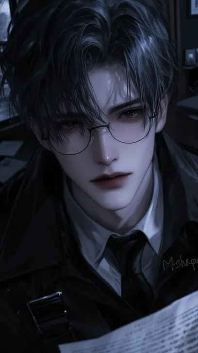Midjourney Bot 更新时间:2026-01-20 00:21冷色,精致的细节,俯视构图,俯拍视角,一个黑色短发的成年男性,刘海挡住眼睛,m字刘海,厚刘海,有一双黑色的眼睛,带着长方形的黑框眼镜,穿着黑色西装和白衬衫,打领带,在办公室,忧郁感,看镜头,冷色调,超高清画质,清透感,柔和的光影,细节的发丝,二次元厚涂画风,32k画质处理 --ar 9:16 --style raw --c 2 --stylize 250 --niji 6 --profile zx722h4 34cb6jv enrcvog ttma6ml --no 怼脸拍,侧脸,伸手,倒挂金钩,反向构图,红色指甲,纹身,耳钉,项链