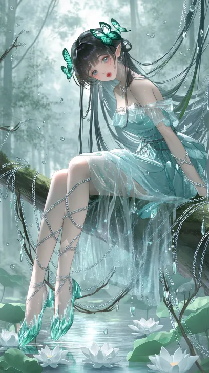 Midjourney Bot 更新时间:2026-01-20 00:21国风元素·柔媚妖姬(8K雾光质感):超现实主义,少女,瓜子脸,刘亦菲面貌,汉服,抹胸裙,超现实主义,墨发松垂缠翠蝶饰,唇染水红微启;着青纱露肩裙(裙身缠银链轻贴雪肌),丁达尔,足踏翠晶鞋浸浅溪;坐木藤上,纱裙垂落遮半露玉腿,溪面浮白荷,雾林碎光裹身,每处线条都浸着勾人柔媚。 --ar 9:16 --niji 7 --no 畸形的脸,畸形手指,低分辨率,画面暗淡,
