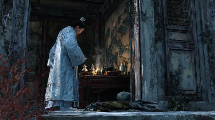Midjourney Bot 更新时间:2026-01-21 00:00Help me generate a picture: Character and action: Kong Sheng: Action in front of the altar, freezing hands, trying to turn on the dying oil lamp. The body is thin and slightly cold. Wearing a blue old Confucian shirt that has been washed white, with worn patches on the cuffs. Huangfu Gongzi: Standing outside the temple gate, lightly tapping the mottled door panel with one hand and losing the other behind him. The body posture is upright and elegant. Dressed in a moon white dark cloud patterned brocade robe, draped in a silver fox fur cloak, with a jade crown tied to hair. Scene and Light and Shadow: Environmental Composition: Broken mountain temple, hanging spider webs, peeling murals. There is withered grass on the ground, and Kong Sheng's simple luggage (book box, bedding) is leaning in the corner. A gap opened in the door, and the cold wind swept in a few snowflakes. The book roll spread out on the case was blown. The light source mainly comes from a small oil lamp on the table (warm yellow light), which creates a dim overall environment and illuminates Kong Sheng and a small area in front of him. Outside the door was the cool blue moonlight on a snowy night, outlining the elegant figure of Prince Huangfu. There were no footprints on the snow beneath his feet or behind him. The contrast between warm inside and cold outside is the main focus of the screen. Inside the temple are warm tones of dull yellow and ochre, while outside the temple are cool tones of floral blue and dark blue, symbolizing the first intersection of two worlds. The painting style combines ink and fine brushwork with digital board drawing effects to depict, and the composition has a strong sense of photography and perspective. High resolution, Guomo, --ar 16:9 --v 7 --stylize 100