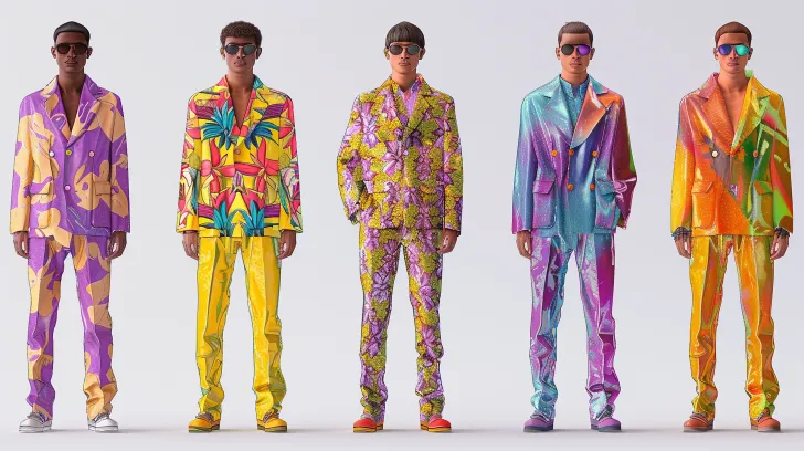 Midjourney Bot 更新时间:2026-01-19 00:24设计五套以九十年代迪斯科的服装风格的现代休闲男装,要求五个正面服装效果图 超高清,超模,超细节,干净背景,艾里斯·范赫本,亚历山大·麦昆, --ar 16:9 --v 6.0 --style raw --stylize 100