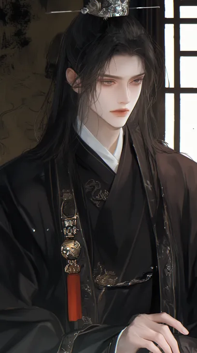 Midjourney Bot 更新时间:2026-01-18 00:24古风单人男,古风王爷,帅哥,远景全身,正脸,成男感,标准帅哥脸,黑红色汉服,黑长发用墨玉簪束起,精致成熟五官,白皙的皮肤,哑光质地皮肤,男性特征,细腻渲染,新中式意境,木质家具,朱砂痣,室内坐姿,最高画质,绝美眼睛,长睫毛,朦胧美,锁骨,八块腹肌,丰富细节,淡唇,朦胧意境,光影变化,室内打光,高清画质,高品质,比例正常。 --ar 9:16 --stylize 1000 --niji 6 --profile 2twrvmr spr1pcg