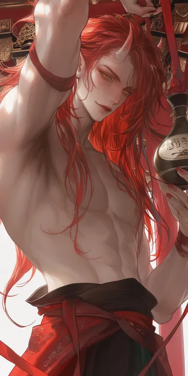 Midjourney Bot 更新时间:2026-01-18 00:05https://images.gogpt.vip/aigf/m_origin/20260117/1941884/7bg50p6vulyfcjm5.png https://images.gogpt.vip/aigf/m_origin/20260117/1941884/4f1nwyfx9rwk3enn.png https://images.gogpt.vip/aigf/m_origin/20260117/1941884/nsu8f6v0jo9d3az6.png 男人,红色长发用红绳绑起几缕,性格张扬,笑容邪魅,头上长着两个小小的鬼犄角,手拿那种喝酒的葫芦,葫芦上绑着红绳,,赤着双臂,穿着日本战国神话时期时的特色服饰,画面主色调偏红,细节精致,头发蓬松,成年男人,皮肤白皙,脸棱角分明,赤裸双臂,肌肉紧实,面部棱角分明的成年男人,半身特写,背景是日本神社,红柱挂白纸,成年男人,成年男人,头上有一对小巧的恶魔犄角,成年男人。棱角分明的脸庞 超精细,半写实动漫风格,犬夜叉,千与千寻,仰视视角, --ar 1:2 --style raw --iw 0.5 --niji 6