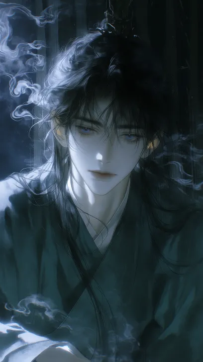 Midjourney Bot 更新时间:2026-01-18 00:08伪厚涂层动画风格,光影纹理,逼真的纹理,写实肌理,真人质感,一英俊男性,上半身的肖像,正面脸,长长的黑色直发,发冠,冷漠,傲慢,蓝色眼睛,长长的睫毛,中式风格的汉服,动态动作,中国古代风格的黑色屏风背景,山居禅房(窗外修竹、香烟袅袅),特写镜头,隐逸郡王(长发松松束起、目光沉静深远),穿着深绿交领长衫(大袖、素净无纹),肩头随意披着外衫,席地而坐抚琴,古筝,光影柔和,主色调墨色与青灰,梦幻般的氛围,冷色调的面部光影, --ar 51:91 --stylize 700 --niji 7
