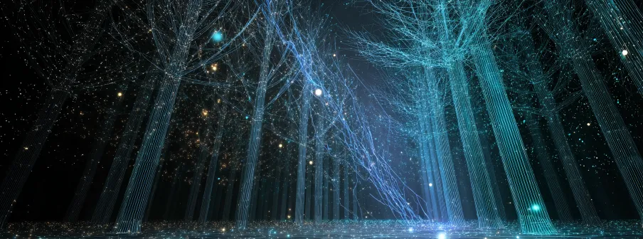 Midjourney Bot 更新时间:2026-01-18 00:08https://images.gogpt.vip/aigf/m_origin/20260117/1905958/krstmuo8hsfwrn95.png 一片超现实主义森林,深蓝与漆黑的半透明树干如同能量光柱般矗立,树干内部脉动着柔和的流光,空气中漂浮着细腻的星尘与光粒子。纤细活跃的光流在树木之间自动穿梭连接,编织成一张发光的能量网络,网络节点迸发出璀璨的光尘。背景漂浮着半透明的发光能量体,地面蜿蜒着流淌的光迹,偶尔浮现短暂的几何光纹。整体画面充满动态光影韵律,静谧梦幻,融合有机生命感与精密科技幻象。采用Octane渲染,广角镜头,柔光效果,模仿萨尔瓦多·达利的艺术风格。 --ar 46:17 --v 7 --style raw --c 5 --seed 3065478481 --weird 119 --stylize 257 --no Character,树,建筑