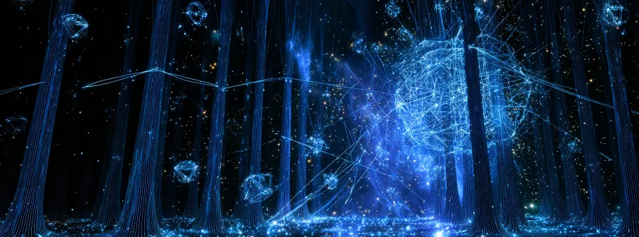 Midjourney Bot 更新时间:2026-01-18 00:08https://images.gogpt.vip/aigf/m_origin/20260117/1905958/krstmuo8hsfwrn95.png 一片超现实主义森林,深蓝与漆黑的半透明树干如同能量光柱般矗立,树干内部脉动着柔和的流光,空气中漂浮着细腻的星尘与光粒子。纤细活跃的光流在树木之间自动穿梭连接,编织成一张发光的能量网络,网络节点迸发出璀璨的光尘。背景漂浮着半透明的发光能量体,地面蜿蜒着流淌的光迹,偶尔浮现短暂的几何光纹。整体画面充满动态光影韵律,静谧梦幻,融合有机生命感与精密科技幻象。采用Octane渲染,广角镜头,柔光效果,模仿萨尔瓦多·达利的艺术风格。 --ar 46:17 --v 7 --style raw --c 5 --seed 3065478481 --weird 1257 --stylize 257 --no Character,树,建筑