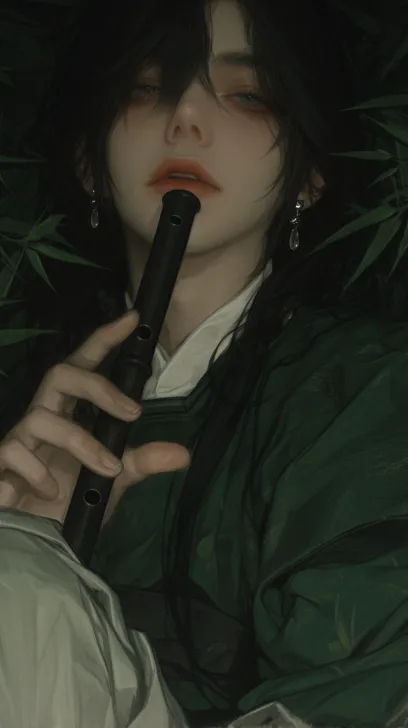 Midjourney Bot 更新时间:2026-01-18 00:09一个穿着青色衣衫的古代年轻男子,青色汉服,清透感,飘逸,长相俊美,五官立体,脸部精致,散发,长发,黑色头发,不羁,少年感,手里拿着一个竹笛,手指修长纤细,背景是竹林, 刻画细节细腻,笔触细腻,渲染细腻,光线柔和,轻熟系,绝美眼睛,长睫毛,光线追踪,cg脸,精细的细节,纤细手指,32k画质轻熟系 --ar 9:16 --stylize 572 --niji 6 --profile lucnezh ijk6fir hzb41jm --no 长指甲