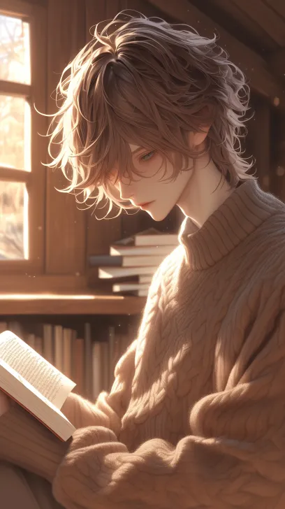 Midjourney Bot 更新时间:2026-01-18 00:18男性,棕色蓬松卷发,棕色系毛衬衫,在充满书香气的木屋里,太阳光自然洒落。 半身拍摄,超高清,特写,写实动漫风格, --ar 9:16 --style raw --stylize 100 --niji 6