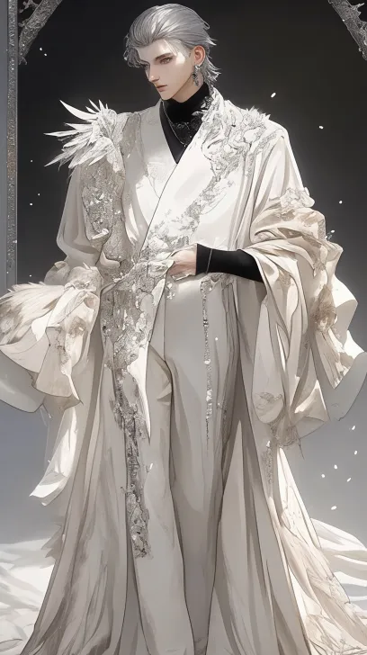 Midjourney Bot 更新时间:2026-01-15 00:21https://images.gogpt.vip/aigf/m_origin/20260114/2007934/934cv6vkdocjsjed.png https://images.gogpt.vip/aigf/m_origin/20260114/2007934/f3syxwcsuets2ce6.JPG https://images.gogpt.vip/aigf/m_origin/20260114/2007934/i1wwwes6yivnw7i0.png https://images.gogpt.vip/aigf/m_origin/20260114/2007934/fs9ao6eub4ktfzs5.JPG https://images.gogpt.vip/aigf/m_origin/20260114/2007934/h3am32qt8fceyx3k.png https://images.gogpt.vip/aigf/m_origin/20260114/2007934/c0442c05gd8968eg.png 我想要设计一个服装质感飘逸,有轻灵感的男性角色,他的性格是淡然温柔的,他整体是一个温润如玉的形象,有羽毛,有羽毛,整体的颜色为淡色系白青色,有神秘感,服装设计不要太繁复,穿着简约一些,衣摆末端为羽毛状,有几何特征,比较飘逸,演唱会风格服饰,有现代时尚感的国风古典服饰时尚,溜肩,需要空白背景 低饱和度,象牙白,浅青,白金,丹顶鹤,灰发,禅风,温柔男孩,前沿装扮,月光,氛围感照明,丁达尔效应,全身,xxxHolic,全身拍摄,全身角色,斯特拉·麦卡特尼,瑞克·欧文斯, --ar 9:16 --stylize 286 --iw 0.5 --niji 6 --sref https://images.gogpt.vip/aigf/m_origin/20260114/2007934/h3am32qt8fceyx3k.png https://images.gogpt.vip/aigf/m_origin/20260114/2007934/i1wwwes6yivnw7i0.png https://images.gogpt.vip/aigf/m_origin/20260114/2007934/934cv6vkdocjsjed.png