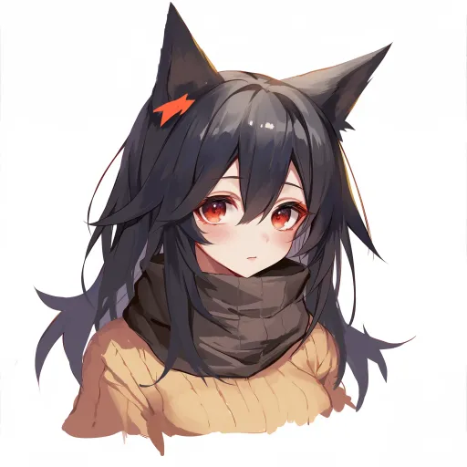 Midjourney Bot 更新时间:2026-01-16 00:00少女,黑色头发,狼耳朵,红色眼睛,穿着黄色毛衣、棕色围巾,胸像,头像,温柔的样子,可爱的样子,明日方舟画风,白色背景 --ar 1:1 --stylize 100 --niji 6 --cref https://images.gogpt.vip/aigf/m_origin/20260114/1656804/jb88i9kbl2lgi80l.png --cw 6