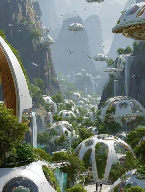 Midjourney Bot 更新时间:2026-01-16 00:04https://images.gogpt.vip/aigf/m_origin/20260115/79580/xgjgy6l711dbglpa.jpeg 未来生态城市 3D 场景,悬浮于峡谷 / 丛林之上的建筑集群:主体是白绿相间的球形 / 流线型建筑(嵌有绿植、透明穹顶),搭配高耸的仿生树形摩天楼、瀑布地貌与飞行载具,色调以清新绿 + 白 + 浅灰为主,风格是‘生态仿生建筑 + 乌托邦城市’的融合,传递‘自然与科技共生的未来人居’隐喻。细节里:球形建筑的绿植嵌合强化‘建筑即生态容器’,悬浮结构凸显‘无界的自然城市空间’,微型人物 / 载具体现‘未来生活的尺度适配’,氛围治愈且充满生态科技的乌托邦质感 --ar 3:4 --v 7 --c 3 --stylize 623 --iw 1.5 --no 文字,汉字,图标,水印